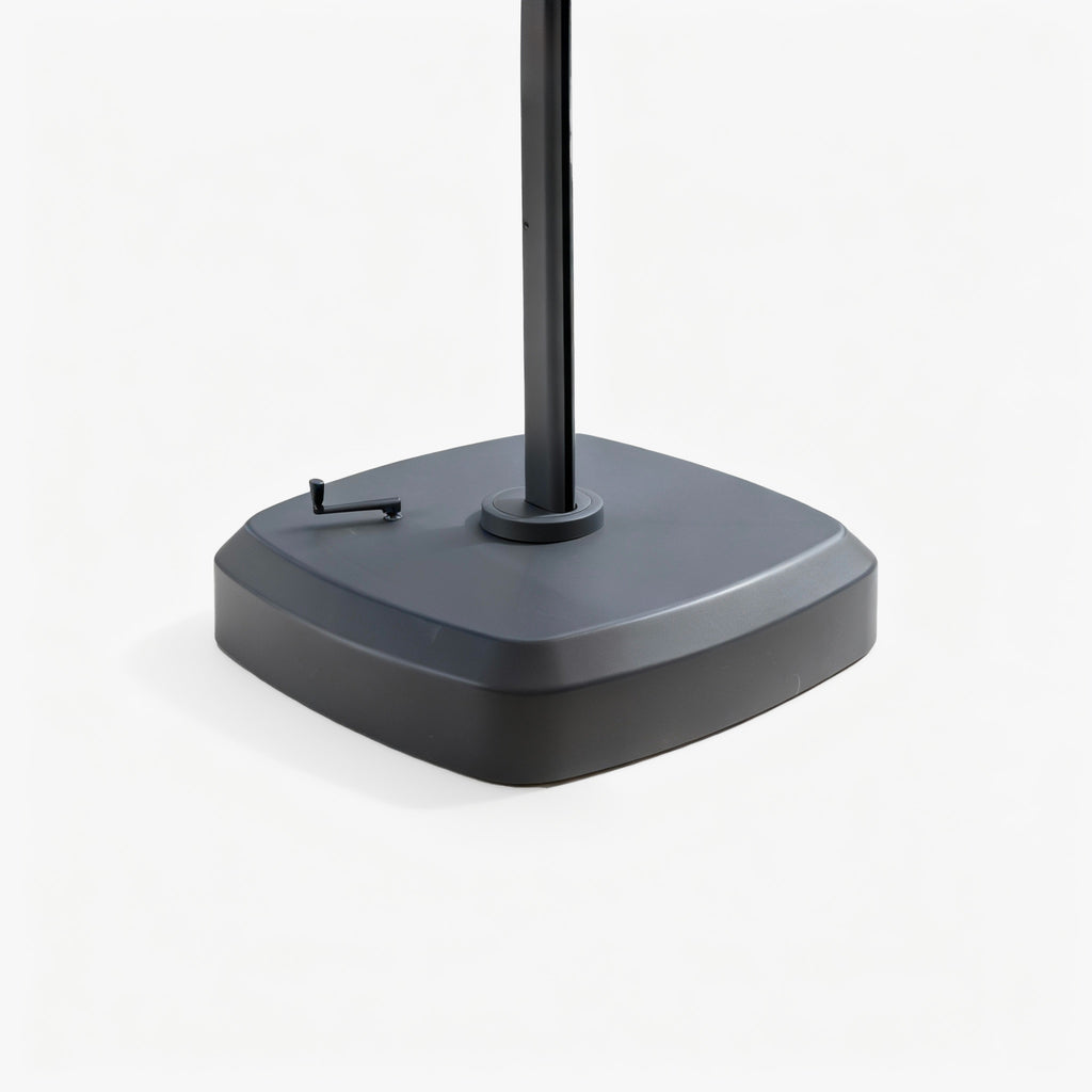The Kona wheeled base for cantilever parasols features a grey anthracite plastic casing. Its frame is made of reinforced, anti-corrosion treated steel. The removable reservoirs are made of black plastic.