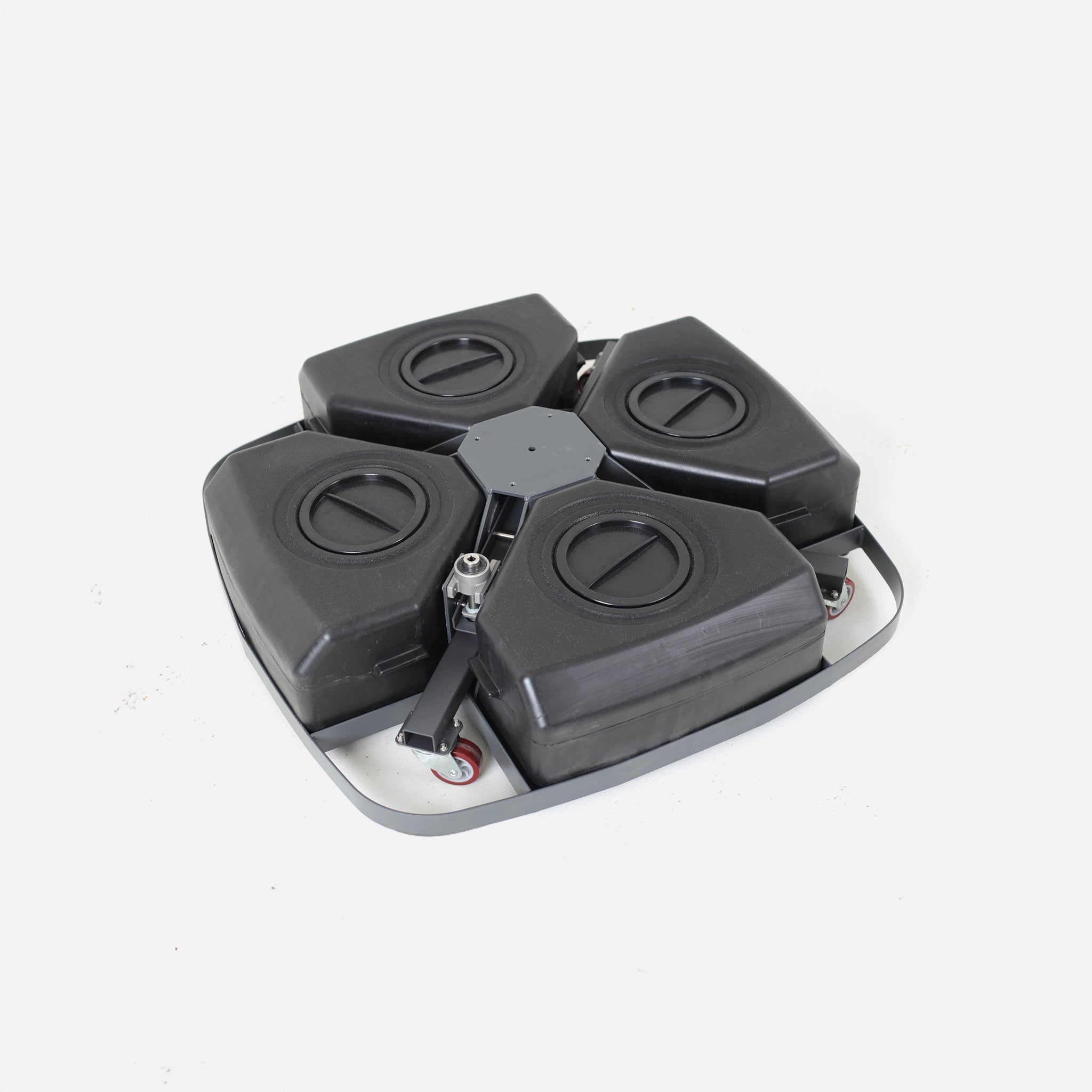 To weight the Kona wheeled base with water and/or sand, simply lift the top cover and fill each of the 4 compartments. Once done, close the compartments and replace the cover.