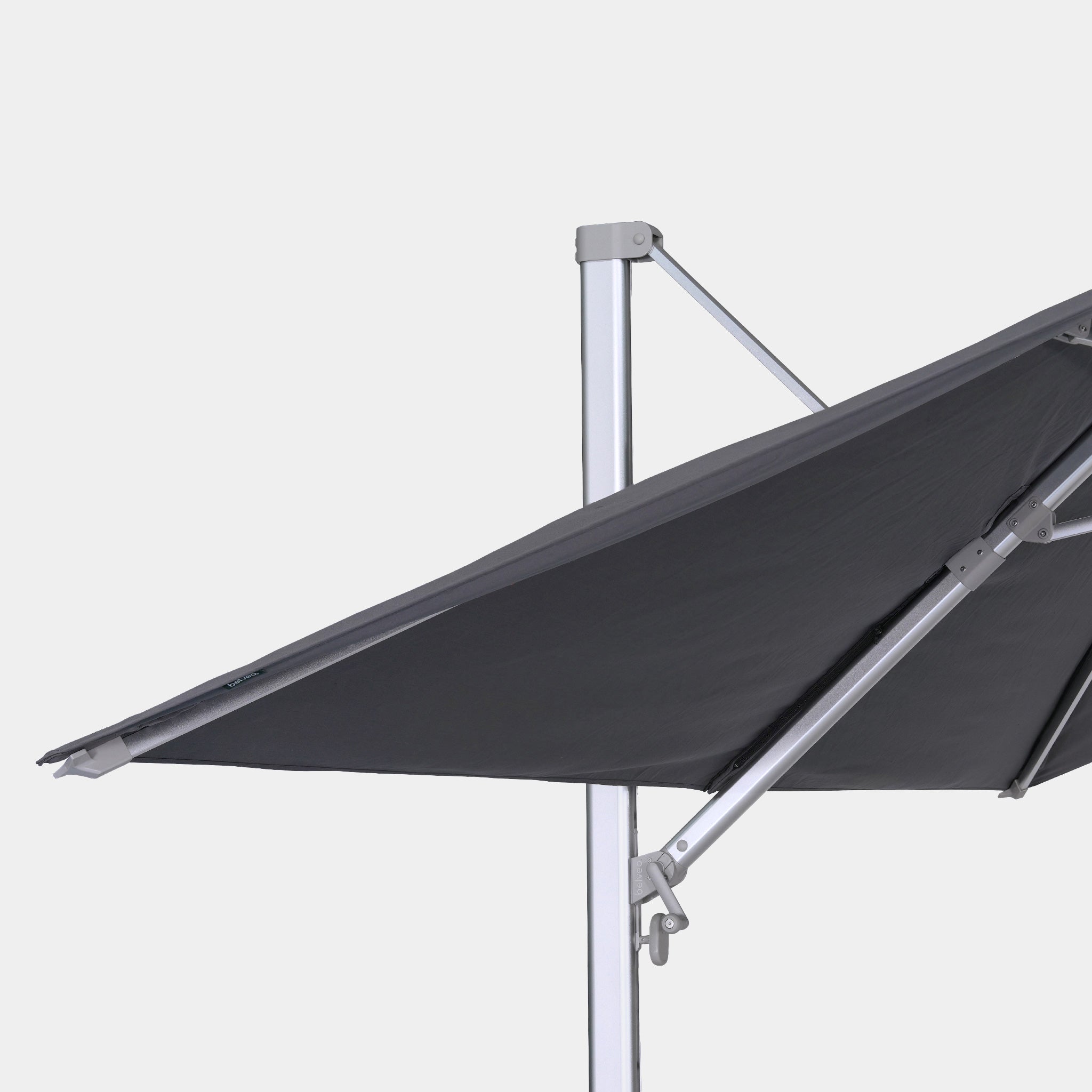 Equipped with an ergonomic handle and a user-friendly crank, the Belveo cantilever parasol is perfect for the whole family. It effortlessly adjusts to suit your preferences and the changing position of the sun throughout the day. Effortlessly tilt the mast vertically or rotate the parasol 360° for the perfect shade, no matter the time of day. Stylish and intuitive, our parasol makes every moment outdoors even more enjoyable.
